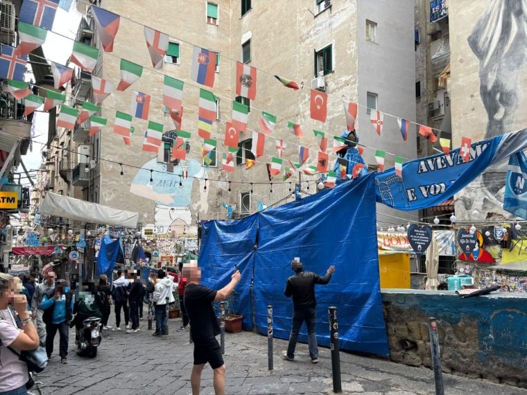 Chiuso Largo Maradona ai Quartieri Spagnoli, coperto per protesta il murale di Diego