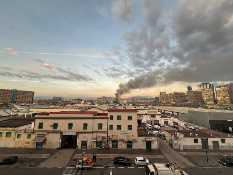Esplosione e incendio a Napoli, in via Santa Maria di Costantinopoli delle Mosche. La deflagrazione nella notte. Colonna di fumo visibile in città. (Foto da Fb Giovanni Russo, pubblicate dal parlamentare Francesco Emilio Borrelli (Avs))
