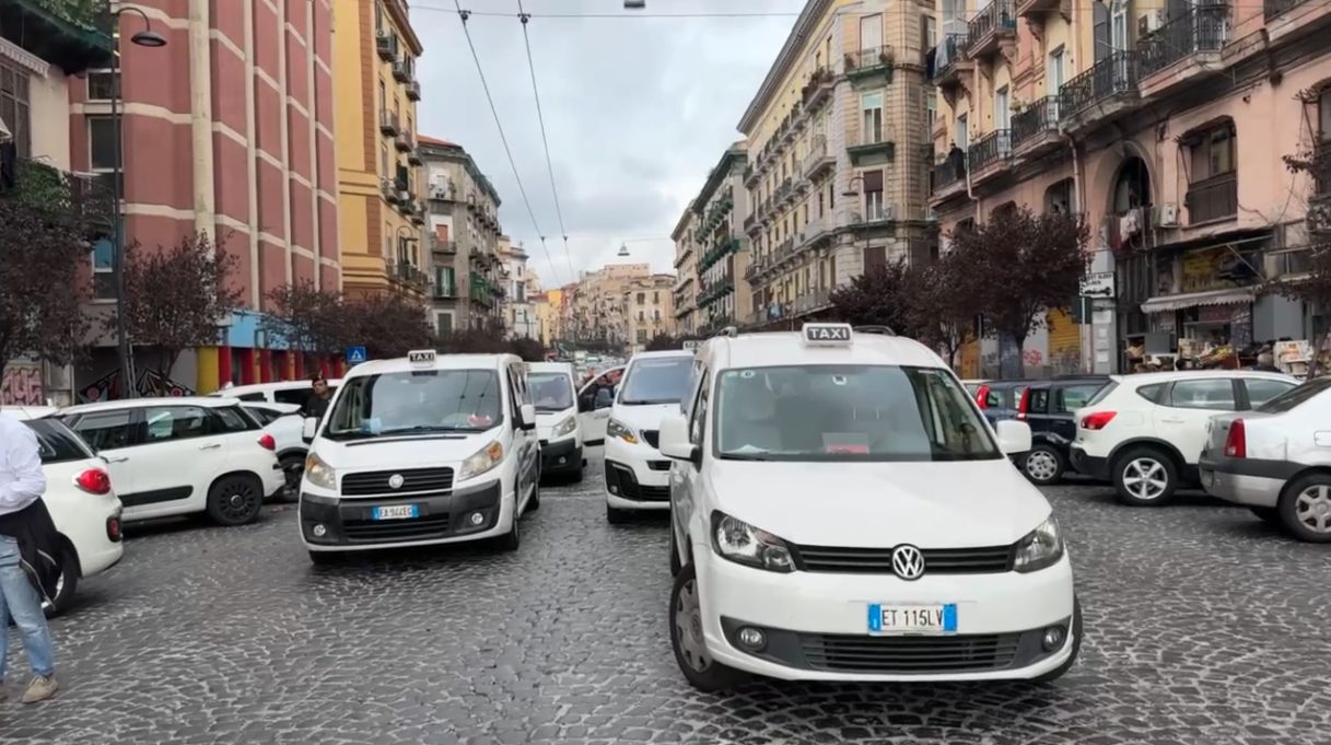 Sciopero dei taxi a Napoli. I tassisti di diversi sindacati protestano dalle 8,30 alle 22. Corteo con auto bianche e fumogeni in centro, da Porta Capuana a piazza Municipio.
