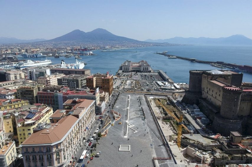 Ecco come sarà la nuova Porta Marittima di Napoli dell'archistar Alvaro Siza in piazza Municipio. Sorgerà davanti alla Stazione Marittima. Sarà alta 8 metri e realizzata in cemento e marmo. Davanti ci saranno tre pennoni con le bandiere italiana, napoletana ed europea. I pavimenti saranno in pietra bianca pugliese di Trani. Sarà la porta di ingresso della "passeggiata a mare", il percorso pedonale di 3 chilometri che dalla piazza porterà fino al Molo San Vincenzo.