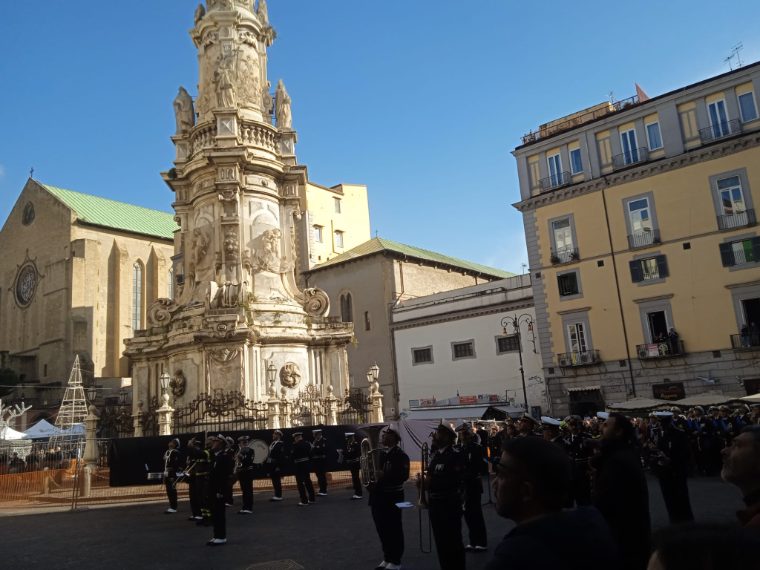 • Festa di Santa Barbara, a Napoli scalata dei vigili del fuoco in piazza del Gesù e tricolore gigante