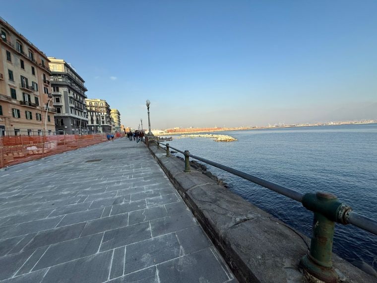 Nuovo Lungomare di Napoli, riapre il marciapiede: è più largo. Ma c'è il problema bancarelle