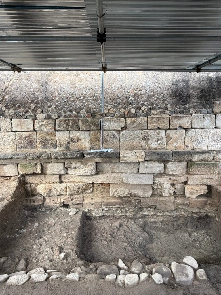 Parco archeologico di Sibari – Scavo del Teatro: stenopos (strada laterale) tagliato dal muro di fondo