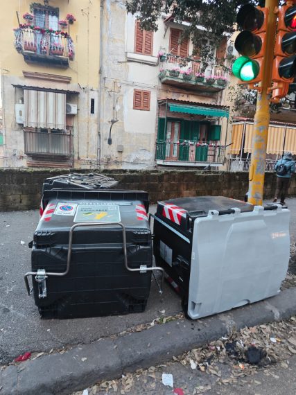 Rovesciano decine di cassonetti dei rifiuti e rubano le ruote, raid al centro di Napoli