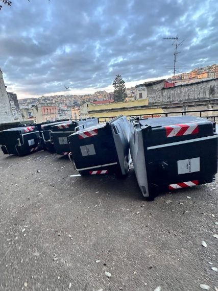 Decine di cassonetti dei rifiuti rovesciati a Capodimonte, al centro di Napoli, nella notte. Rimosse le rotelle. Il consigliere Carlo Restaino: "Sporgeremo denuncia".