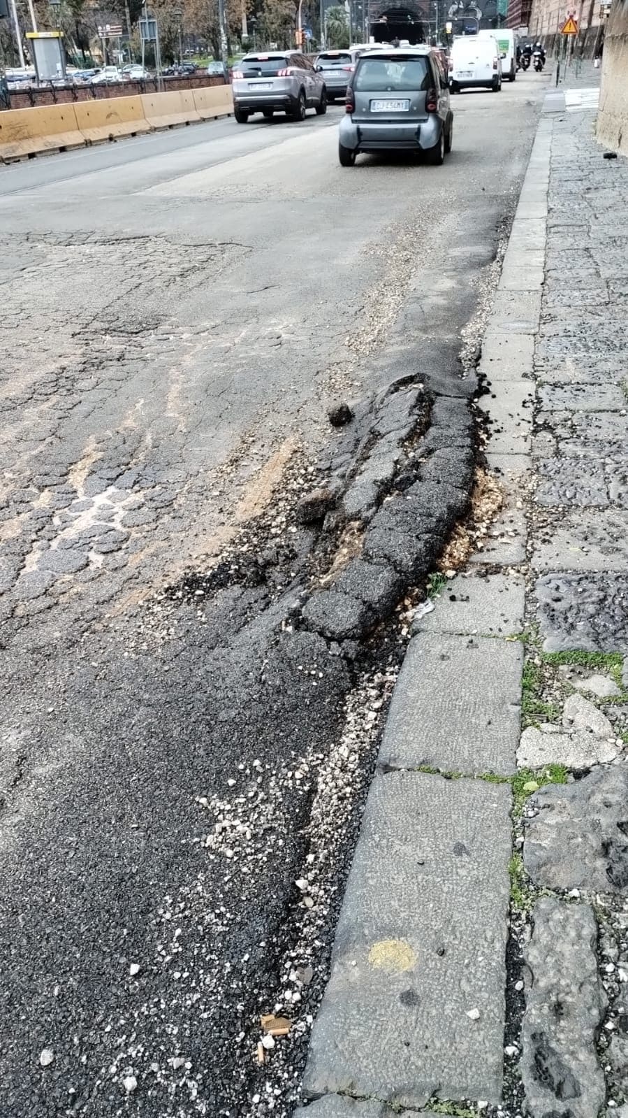 L'asfalto di via Acton è di nuovo un colabrodo 40 giorni dopo l'ultimo intervento