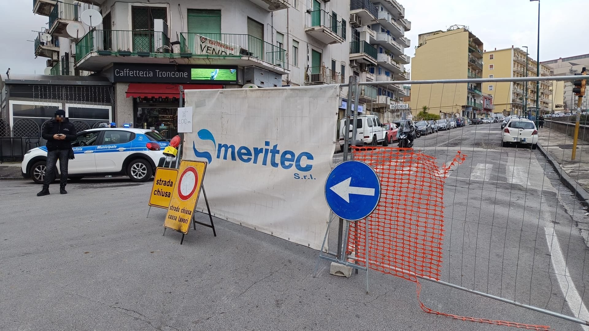 Chiusa via Caravaggio per una voragine, traffico a Fuorigrotta