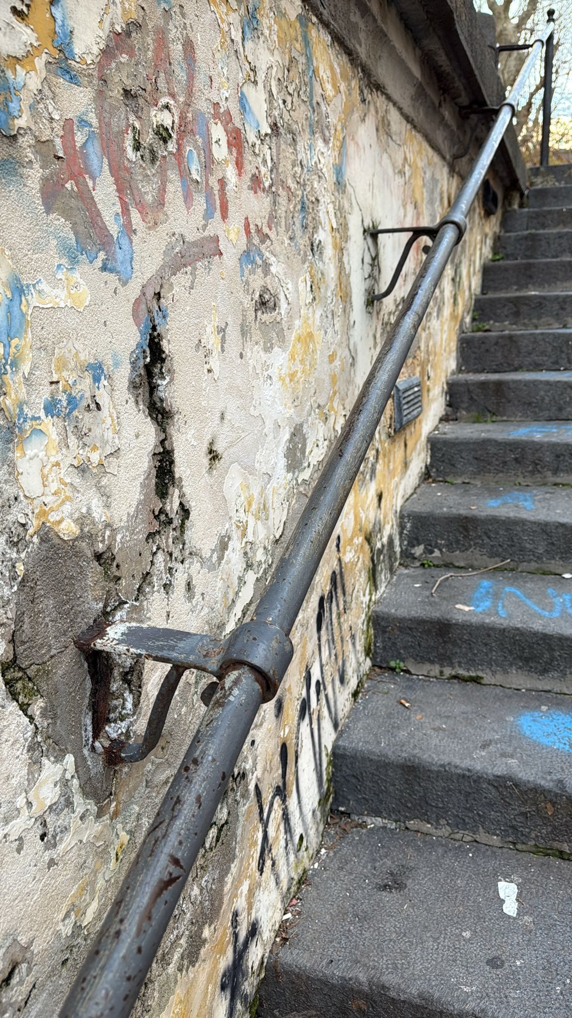Divelto il corrimano di metallo delle scale di via Scarlatti al Vomero, che collegano piazza Vanvitelli a via Morghen. Il consigliere Rino Nasti (Verdi): "Corroso dall'acido urico e usato come scivolo dai ragazzi". Danneggiati e arrugginiti anche i passamano laterali, che sono stati transennati.