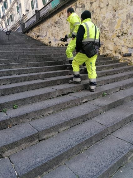 Divelto il corrimano di metallo delle scale di via Scarlatti al Vomero, che collegano piazza Vanvitelli a via Morghen. Il consigliere Rino Nasti (Verdi): "Corroso dall'acido urico e usato come scivolo dai ragazzi". Danneggiati e arrugginiti anche i passamano laterali, che sono stati transennati.