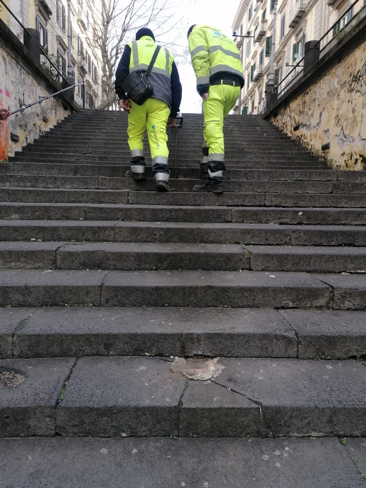 Divelto il corrimano di metallo delle scale di via Scarlatti al Vomero, che collegano piazza Vanvitelli a via Morghen. Il consigliere Rino Nasti (Verdi): "Corroso dall'acido urico e usato come scivolo dai ragazzi". Danneggiati e arrugginiti anche i passamano laterali, che sono stati transennati.