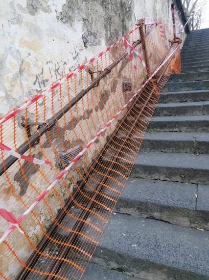 Divelto il corrimano di metallo delle scale di via Scarlatti al Vomero, che collegano piazza Vanvitelli a via Morghen. Il consigliere Rino Nasti (Verdi): "Corroso dall'acido urico e usato come scivolo dai ragazzi". Danneggiati e arrugginiti anche i passamano laterali, che sono stati transennati.