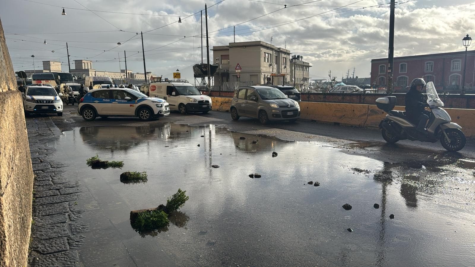 Caos traffico in via Acton a Napoli per una voragine