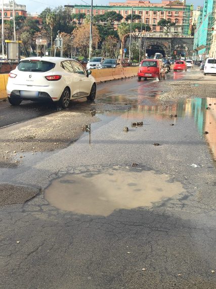 • Via Acton allagata per voragini a Napoli, caos traffico