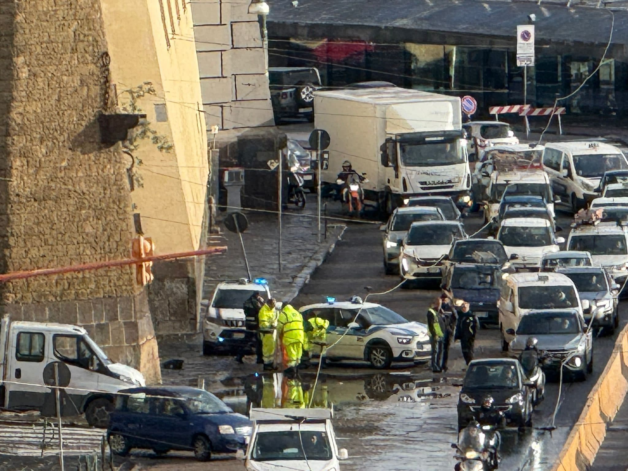 Caos traffico in via Acton per una voragine. Polizia Locale e Abc sul posto.