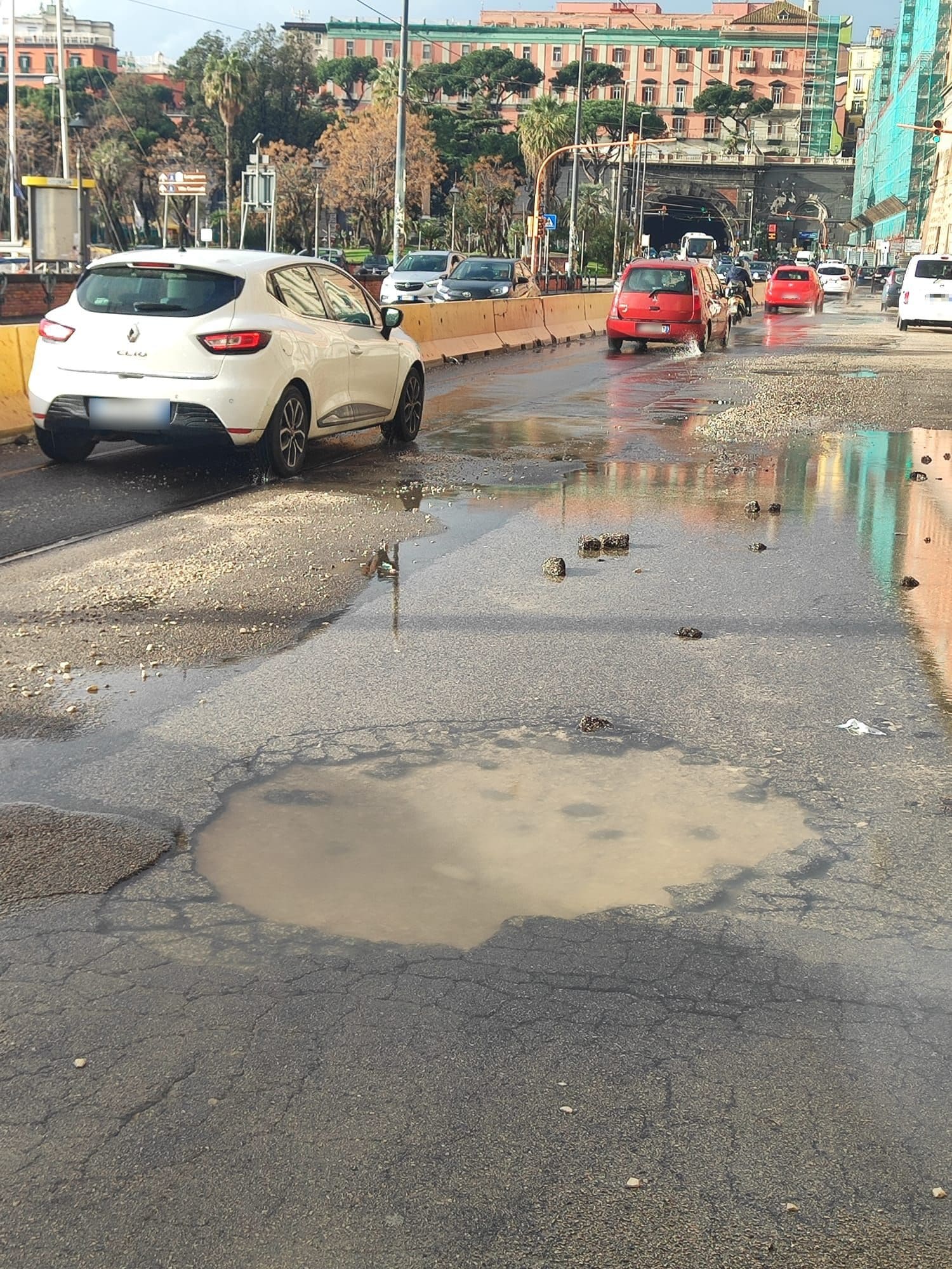 Caos traffico in via Acton a Napoli per una voragine