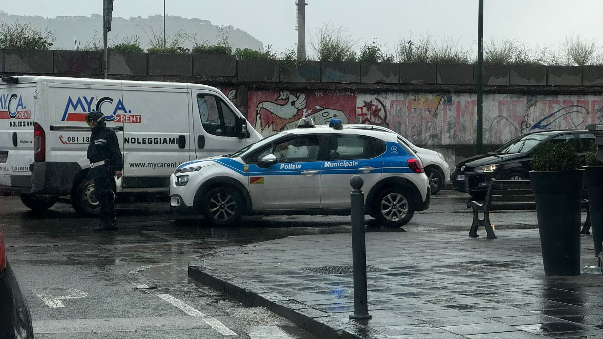 Sprofondata via Bagnoli, la strada dove in questi giorni passano i tir per i cantieri dell'America's Cup. Chiusa la strada. Sul posto i tecnici dell'Abc e la Polizia Locale.