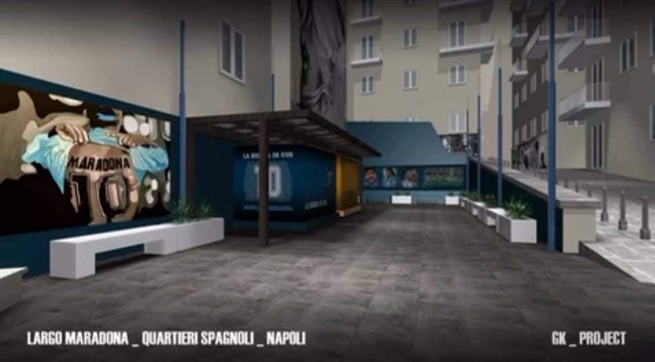 Largo Maradona sarà rimesso a nuovo e trasformato in una piazza pubblica con ingresso gratis. I lavori sono sponsorizzati da privati. Ci saranno chioschi per la vendita di bibite e gadget ai turisti. I rendering di GK.