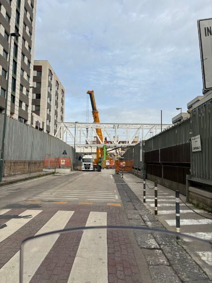 Partiti i lavori per costruire il ponte sospeso che collegherà la Procura di Napoli al Palazzo di Giustizia, sede del Tribunale, presso il Centro Direzionale di Napoli. Dureranno fino al 31 marzo 2026. Chiusa via Grimaldi.