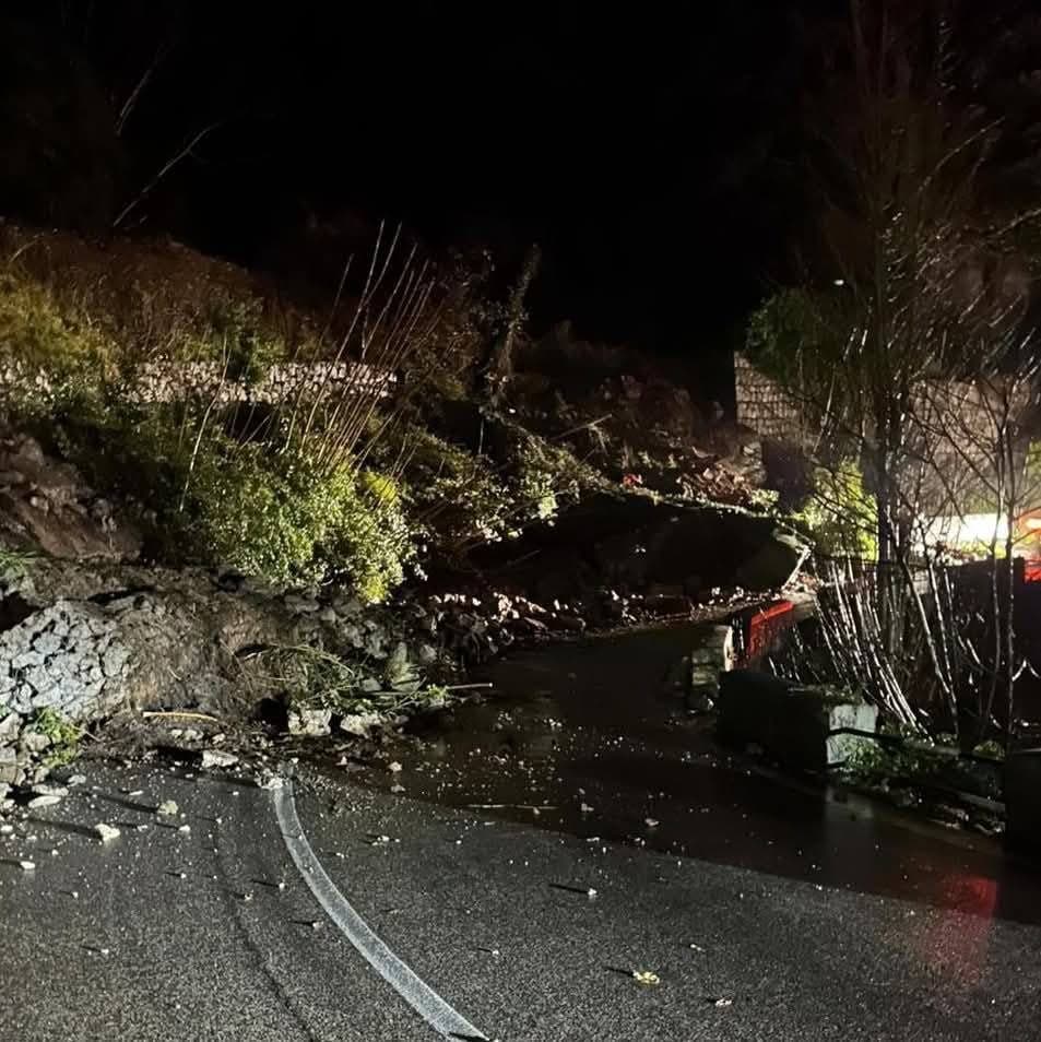 Frana nella notte sulla strada statale Amalfitana. Strada chiusa.