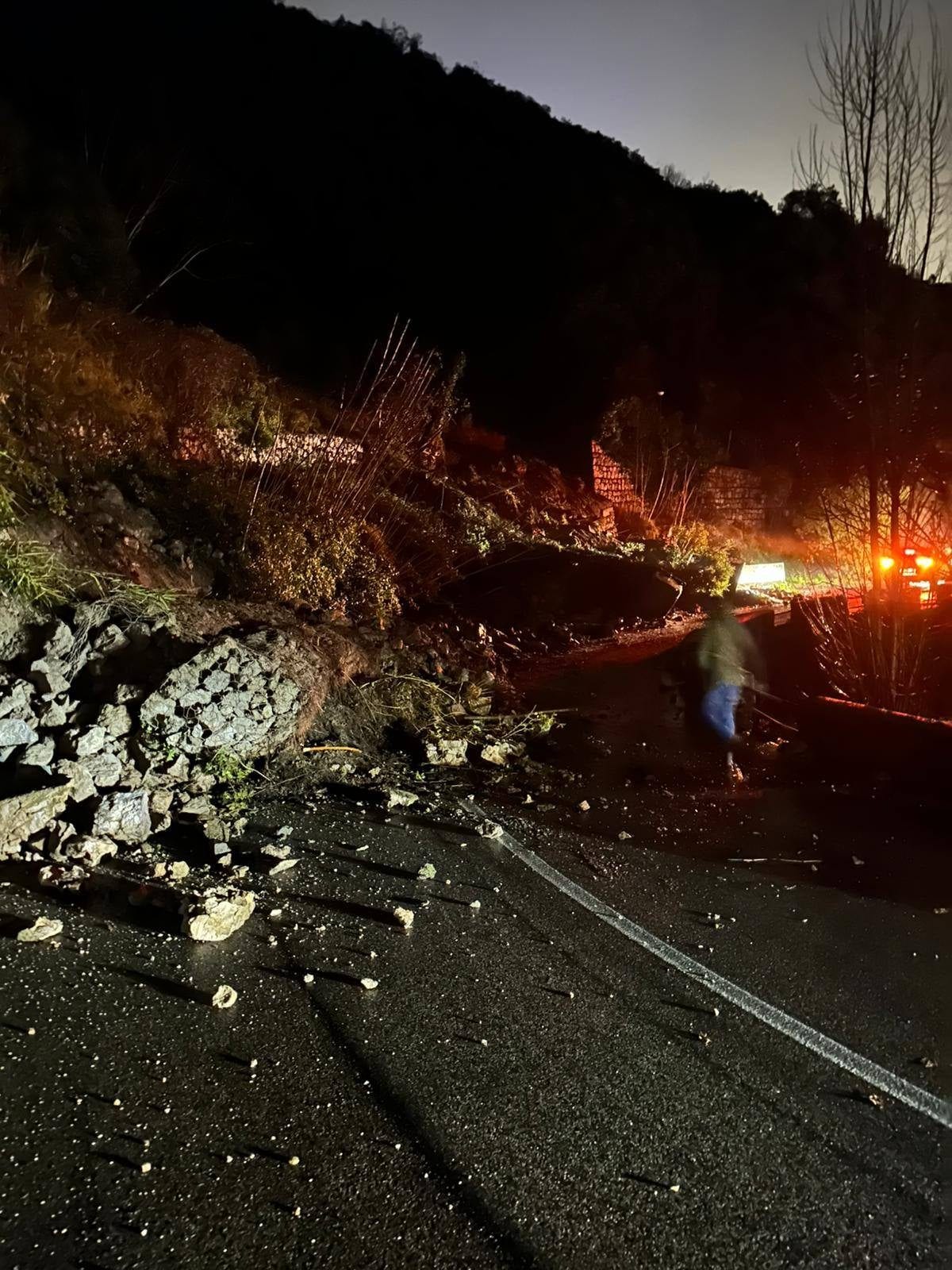 Frana nella notte sulla strada statale Amalfitana. Strada chiusa.