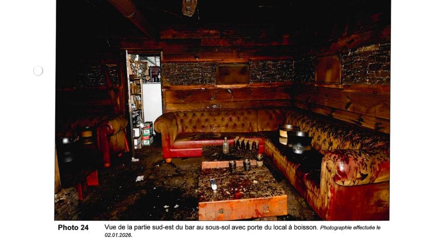 Divani e sedie bruciati, soffitti crollati e oggetti sparsi. Il dossier fotografico, raccolto dagli inquirenti, mostra come appariva il Constellation di Crans Montana subito dopo l'incendio di Capodanno nel quale sono morte 41 persone.