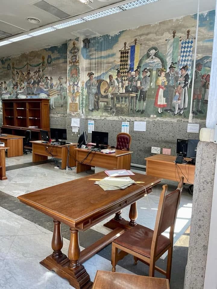Gli affreschi della birreria bavarese dell'ex Hotel de Londres di Napoli rovinati dalle infiltrazioni. L'edificio del Demanio ospita oggi la sede del Tar Campania.