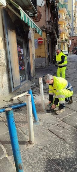 1. Blitz al Rione Sanità, rimossi centinaia di paletti e fioriere abusivi