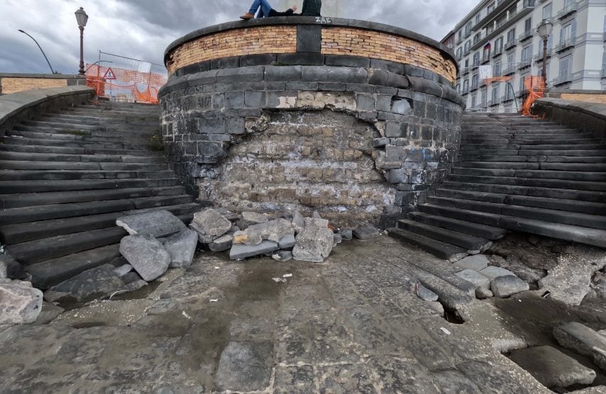 "Nuovi crolli alla Colonna Spezzata sul Lungomare di Napoli dopo le mareggiate"