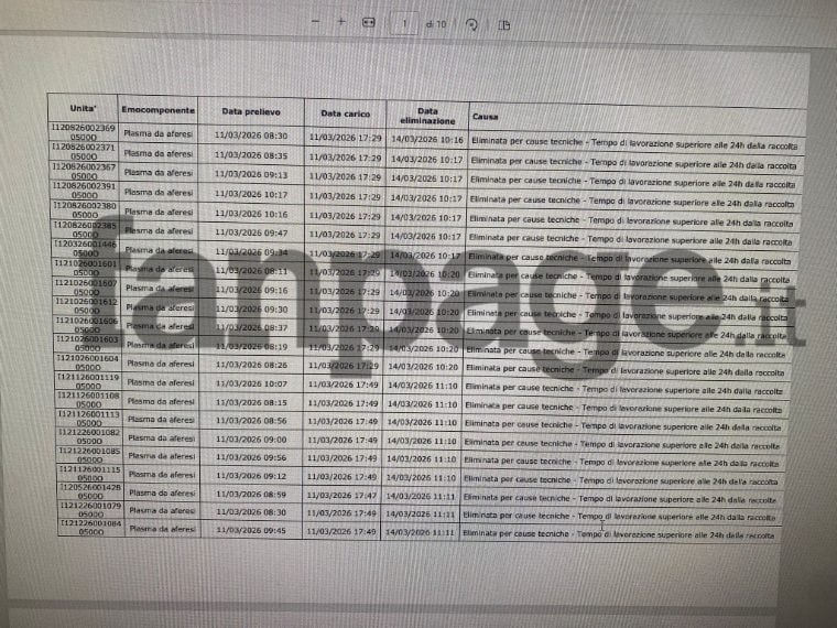 1. Gli elenchi delle sacche di plasma buttate nelle Marche: sono centinaia