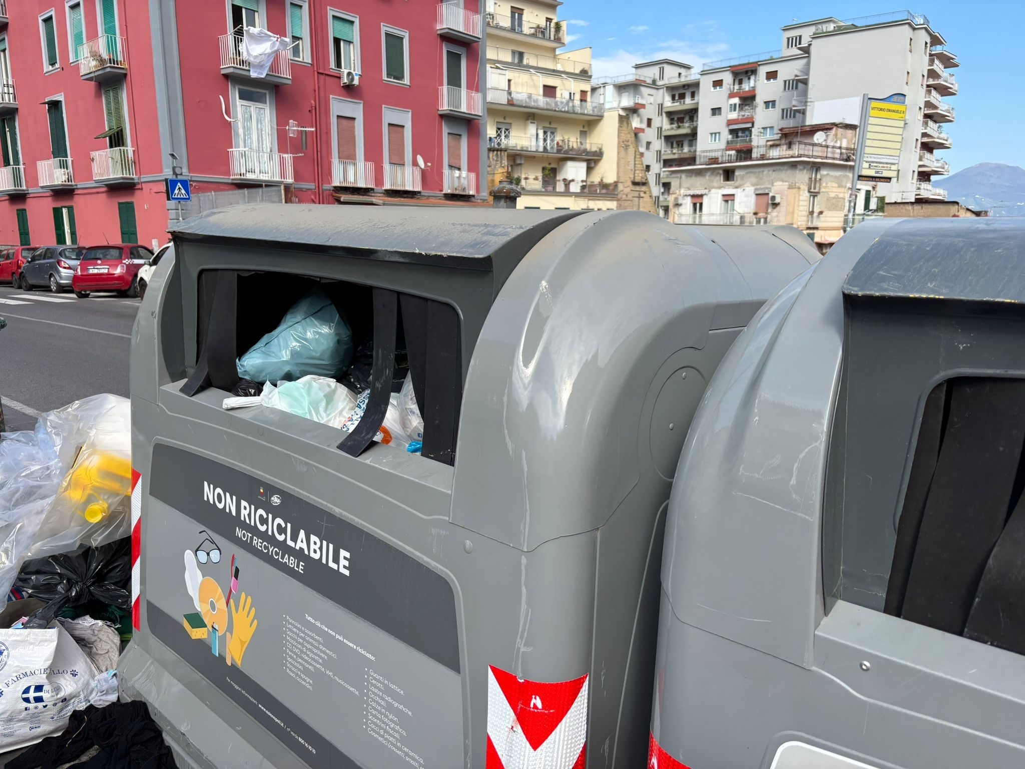 Danneggiate le nuove campane dei rifiuti al Corso Vittorio Emanuele, distrutte le bande anti-vandali