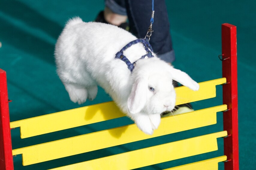Si chiama Kaninhop ed è il nuovo sport alla fiera degli animali di Stoccarda che consiste nel salto ad ostacoli per conigli.