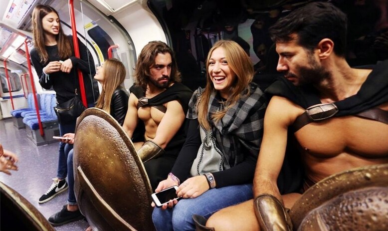 Uomini travestiti da antichi guerrieri greci invadono la metropolitana di Londra. I muscolosi "gentiluomini" hanno corso su e giù per le scale mobili ed invaso le strade della capitale sbucando dal sottosuolo da un quartiere all'altro.