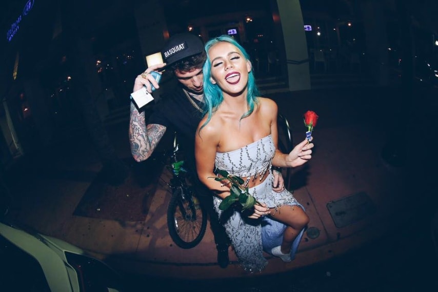 Il rapper è partito per Miami dove ha corteggiato spudoratamente (anche via social) la dj australiana TigerLily, nome d'arte di Dara Kristen Hayes. Ecco le foto che testimoniano il loro "flirt" (per scherzo o per davvero?) e alcuni scatti che mostrano tutta la sensualità della bella disc jockey dai capelli azzurri.