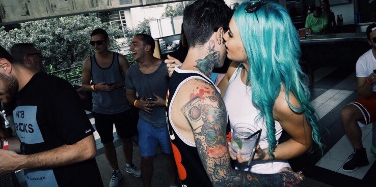 Il rapper è partito per Miami dove ha corteggiato spudoratamente (anche via social) la dj australiana TigerLily, nome d'arte di Dara Kristen Hayes. Ecco le foto che testimoniano il loro "flirt" (per scherzo o per davvero?) e alcuni scatti che mostrano tutta la sensualità della bella disc jockey dai capelli azzurri.