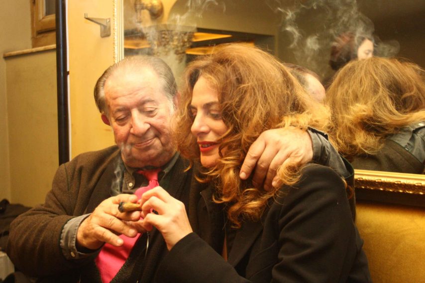 Le immagini del nota regista di cinema erotico e della compagna Caterina Varzi, psicoanalista, ex-avvocato, attrice e sua assistente. La coppia si è legata dopo la morte della moglie di Brass, Carla Cipriani, nel 2006.