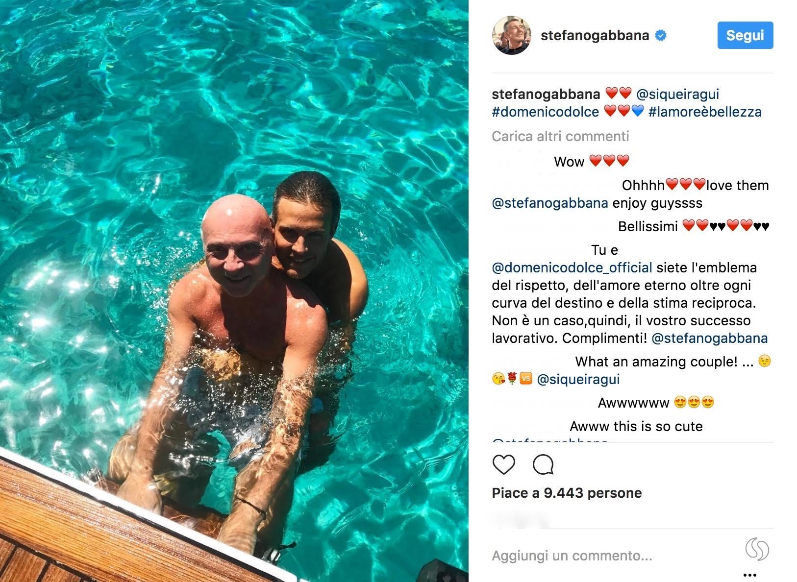 Stefano Gabbana ha diffuso uno scatto che ritrae Domenico Dolce con l'attuale fidanzato Guilherme Siqueira. La foto è accompagnata dalla frase: "L'amore è bellezza". Gabbana è stato legato sentimentalmente a Dolce dai primi degli anni '80 fino al 2004.