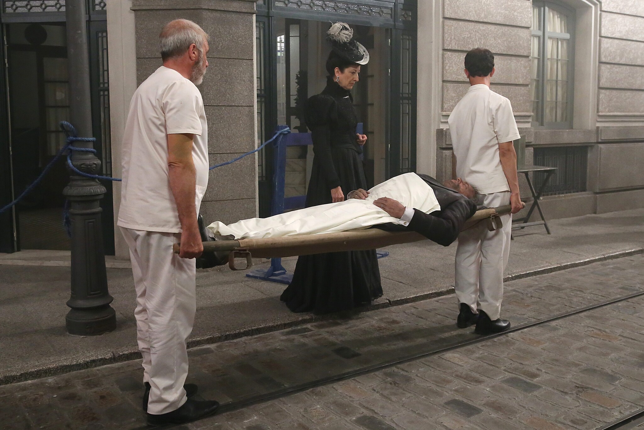 Le foto di scena che ritraggono il momento della morte del personaggio di Cayetana Sotelo Ruz nella soap 'Una vita'. La donna rimarrà coinvolta in un incendio a seguito dello scoppio di una bomba. Il suo corpo non verrà mai ritrovato ma verrà dichiarata morta.