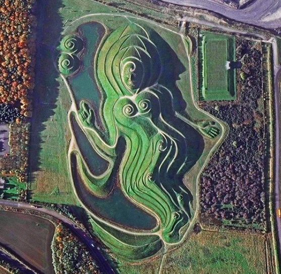 Si tratta di un luogo nei pressi di Carlington nel Regno Unito, conosciuto col nome di Northumberlandia. L'opera è conosciuta anche col nome di "Signora del Nord" ed è una maestosa formazione di roccia e argilla, che si estende per circa 20 ettari e prevede alcuni sentieri per chi volesse visitarla. I tre milioni di sterline che sono stati necessari per la realizzazione, tutti di provenienza privata, hanno permesso all’artista Charles Jencks di recuperare le tonnellate di materiale di scarto proveniente dalla miniera, creando un nuovo paesaggio in trasformazione. La cosa ancora più particolare è che l'opera è "in trasformazione" continua dato che alcune parti sono fisse (come quelle costruite con la roccia che seguono determinate regole anche di sicurezza). Quelle invece verdi sono lasciate crescere e trasformarsi come natura vuole, così è possibile vedere la Signora del Nord cambiare colore a seconda della stagione.