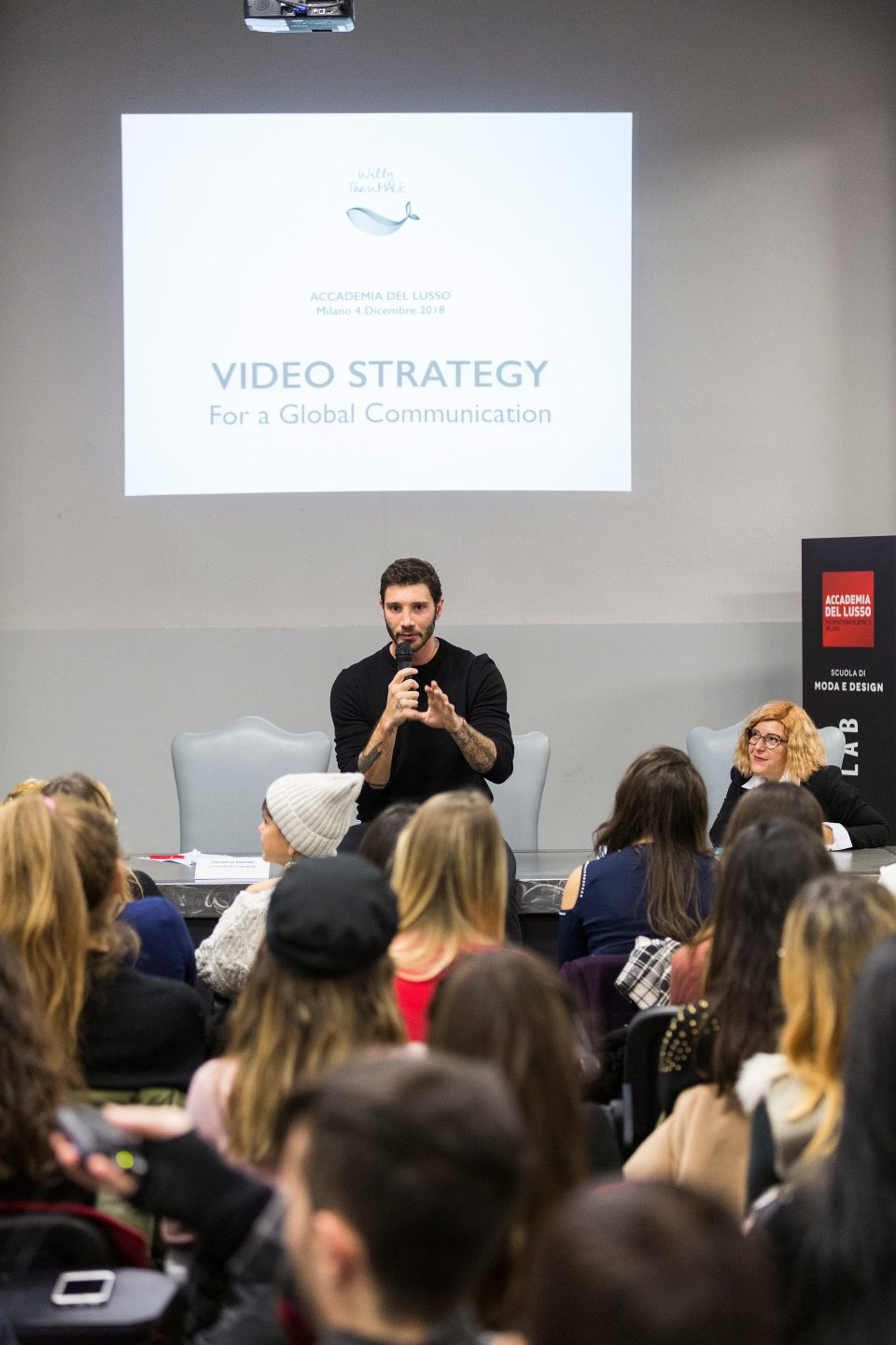 Le immagini del seminario "Video Strategy for a global communication" tenuto da Stefano De Martino, co-founder di Willy the Whale, Creative & Production factory, presso l'Accademia del Lusso di Milano.