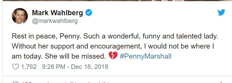 "Riposa in pace, Penny. Una donna così meravigliosa, divertente e di talento. Senza il suo sostegno e incoraggiamento, non sarei dove sono oggi. Ci mancherà"