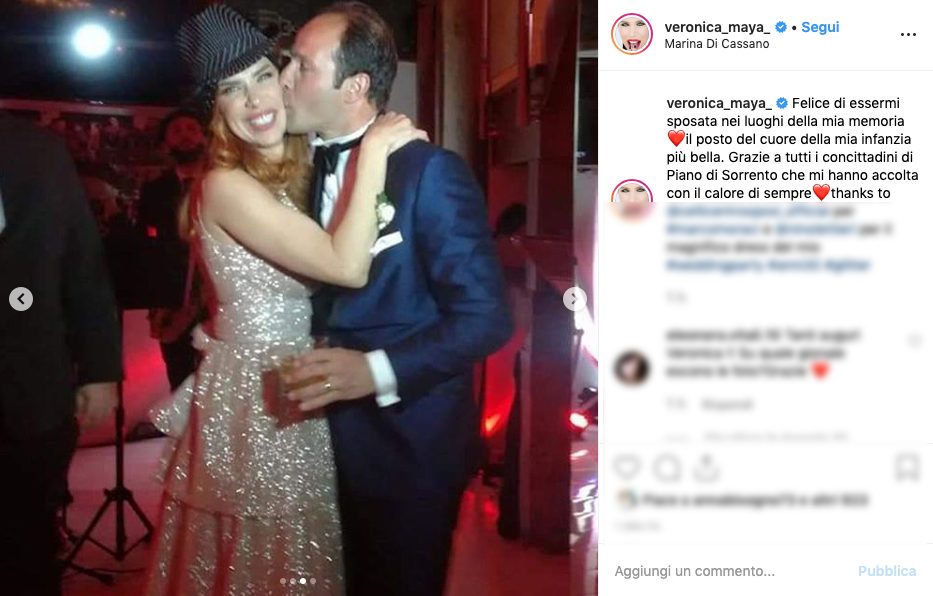 È stato il terzo sì per Veronica Maya e Marco Moraci, già sposi ai Caraibi nel 2017 e con rito civile all'inizio del 2019. Le foto mostrano i momenti più belli del matrimonio religioso e della festa organizzata nei luoghi dell'infanzia della Maya, nella bellissima cornice di Sorrento.