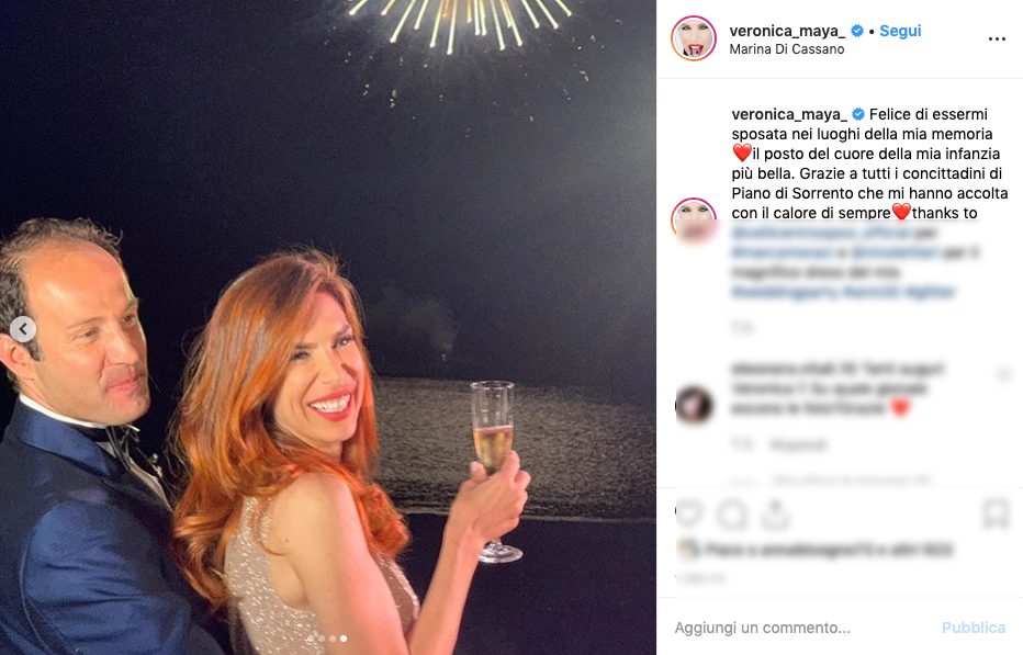È stato il terzo sì per Veronica Maya e Marco Moraci, già sposi ai Caraibi nel 2017 e con rito civile all'inizio del 2019. Le foto mostrano i momenti più belli del matrimonio religioso e della festa organizzata nei luoghi dell'infanzia della Maya, nella bellissima cornice di Sorrento.