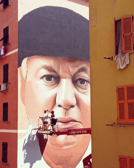 Genova, il ritratto di Fantozzi appare sull'edificio: l'arte a cielo aperto