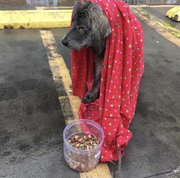 Alcune fotto scattate a questo cane, bagnato, tremante dal freddo, affamato e ferito. Una donna pubblica gli scatti su Facebook per mostrarlo, descrivendo la situazione e spiegando che l'animale era timoroso ma molto stanco, con diverse ferite agli occhi e sulle zampe: "Non so da dove viene, ma spero che non debba mai tornare lì". Così la cagna è stata adottata, curata e coccolata dalla sua nuova padrona.
