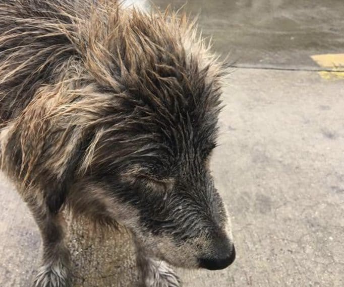 Alcune fotto scattate a questo cane, bagnato, tremante dal freddo, affamato e ferito. Una donna pubblica gli scatti su Facebook per mostrarlo, descrivendo la situazione e spiegando che l'animale era timoroso ma molto stanco, con diverse ferite agli occhi e sulle zampe: "Non so da dove viene, ma spero che non debba mai tornare lì". Così la cagna è stata adottata, curata e coccolata dalla sua nuova padrona.