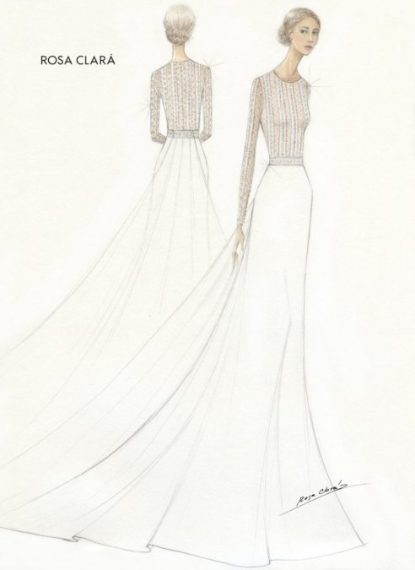 Il bozzetto dell'abito da sposa disegnato dalla stilista Rosa Clara
