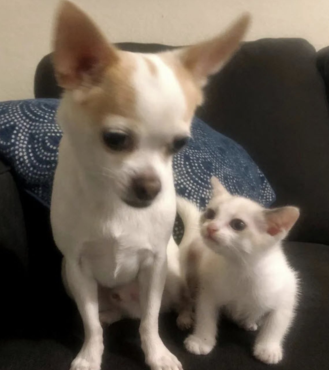 Ylenia De La Cueva, una giovane donna di Miami, ha salvato dalla strada una gattina che un giorno di freddo e pioggia ha trovato poco lontano da casa, mentre cercava riparo. Dopo averla curata, lavata e nutrita, ha fatto in modo che la piccola iniziasse a stare in casa, nella stessa casa dove c'era già un altro animale domestico. L'incontro tra Bella" (il nome dato alla gattina) e "Buster" (il nome invece del cane) è stato sin da subito amorevole, tanto che il "padrone di casa" ha da subito adottato e protetto la piccolina.