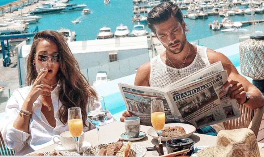 Le immagini che ritraggono il modello ed ex naufrago dell'Isola dei Famosi con la fidanzata, modella spagnola passata anche a veline.