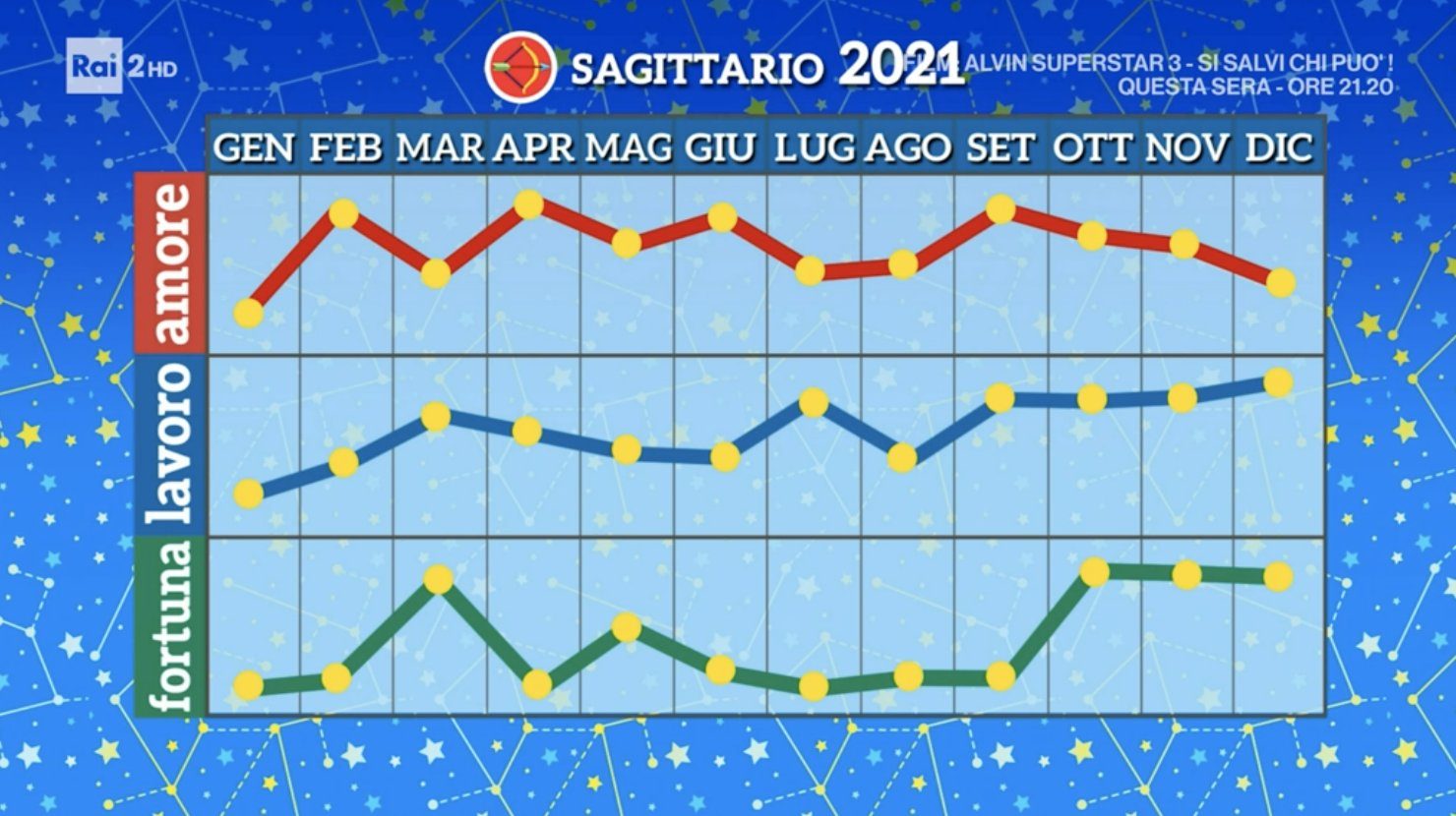L’Oroscopo 2021 di Paolo Fox con le previsioni del noto astrologo raccontate attraverso i grafici segno per segno su amore, fortuna e lavoro per i prossimi 12 mesi. Il riassunto in immagini del 2021 per Ariete, Toro, Gemelli, Cancro, Leone, Vergine, Bilancia, Scorpione, Sagittario, Capricorno, Acquario e Pesci, e la classifica generale con i segni più fortunati dell’anno.