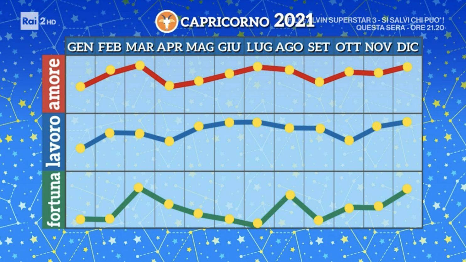 L’Oroscopo 2021 di Paolo Fox con le previsioni del noto astrologo raccontate attraverso i grafici segno per segno su amore, fortuna e lavoro per i prossimi 12 mesi. Il riassunto in immagini del 2021 per Ariete, Toro, Gemelli, Cancro, Leone, Vergine, Bilancia, Scorpione, Sagittario, Capricorno, Acquario e Pesci, e la classifica generale con i segni più fortunati dell’anno.